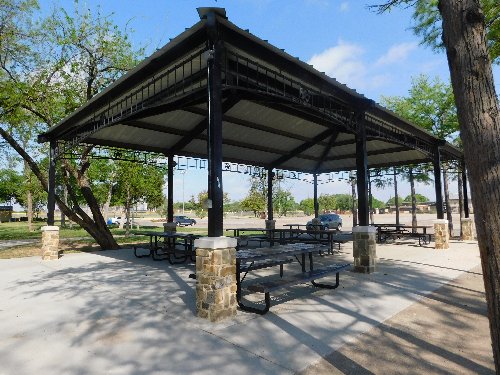 - Pavilion with eight tables and trash cans, but no grill(s)