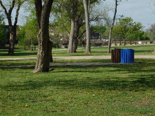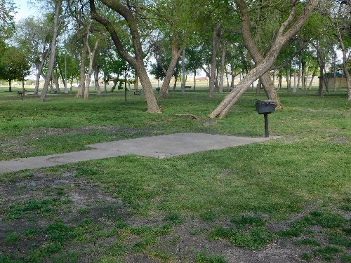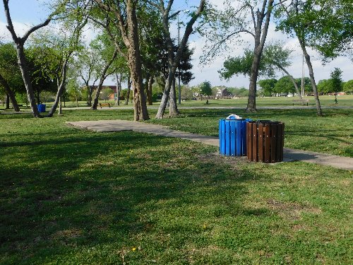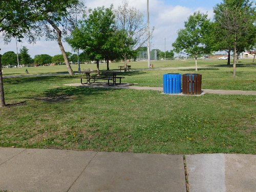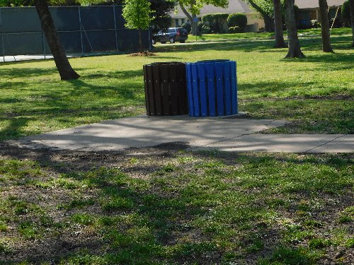 Here's another picnic pad with trash cans but no table or grill |