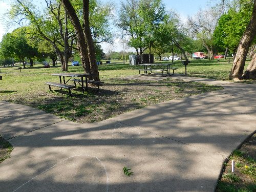 - 2 pads with a table, but no grill or trash cans