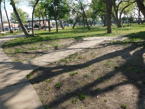 Huffhines Park is fortunate to have a natural grove of trees where COR has placed several "Picnic Pads" (my term, I don't know what the City calls them), which consist of a rectangular slab of concrete complete with three items: 1.) A sturdy picnic table, 2.) a barbecue grill, and 3.) a set of trash cans, one for ordinary refuse and the other for recyclables. Wait, did I say "COMPLETE?" Turns out, on closer inspection, that of the park's 18 Picnic Pads (not counting the Pavilion and a large slab of concrete behind it), as of March 30, 2026 and April 3, 2026 (when I conducted two inspections), only two pads were complete with table, grill, and trash cans! All the rest were missing some component, and some had none at all! All this as a result of what I will politely call "benign neglect."